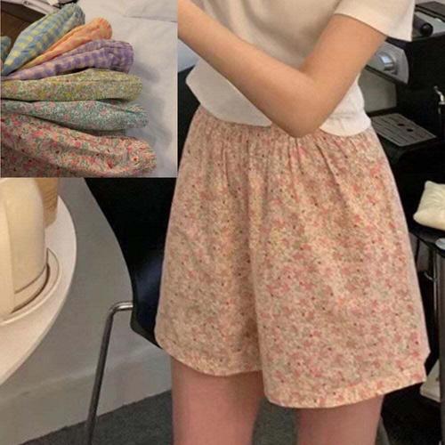 [끌레아]파스텔 면 반바지 홈웨어 허리밴딩 여름 꽃패턴 잠옷