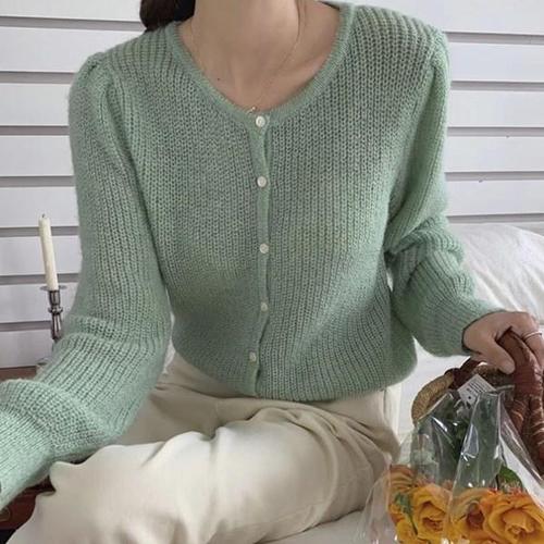 [옷자락] 여자 파스텔 보카시 울니트 라운드넥 나그랑 가디건