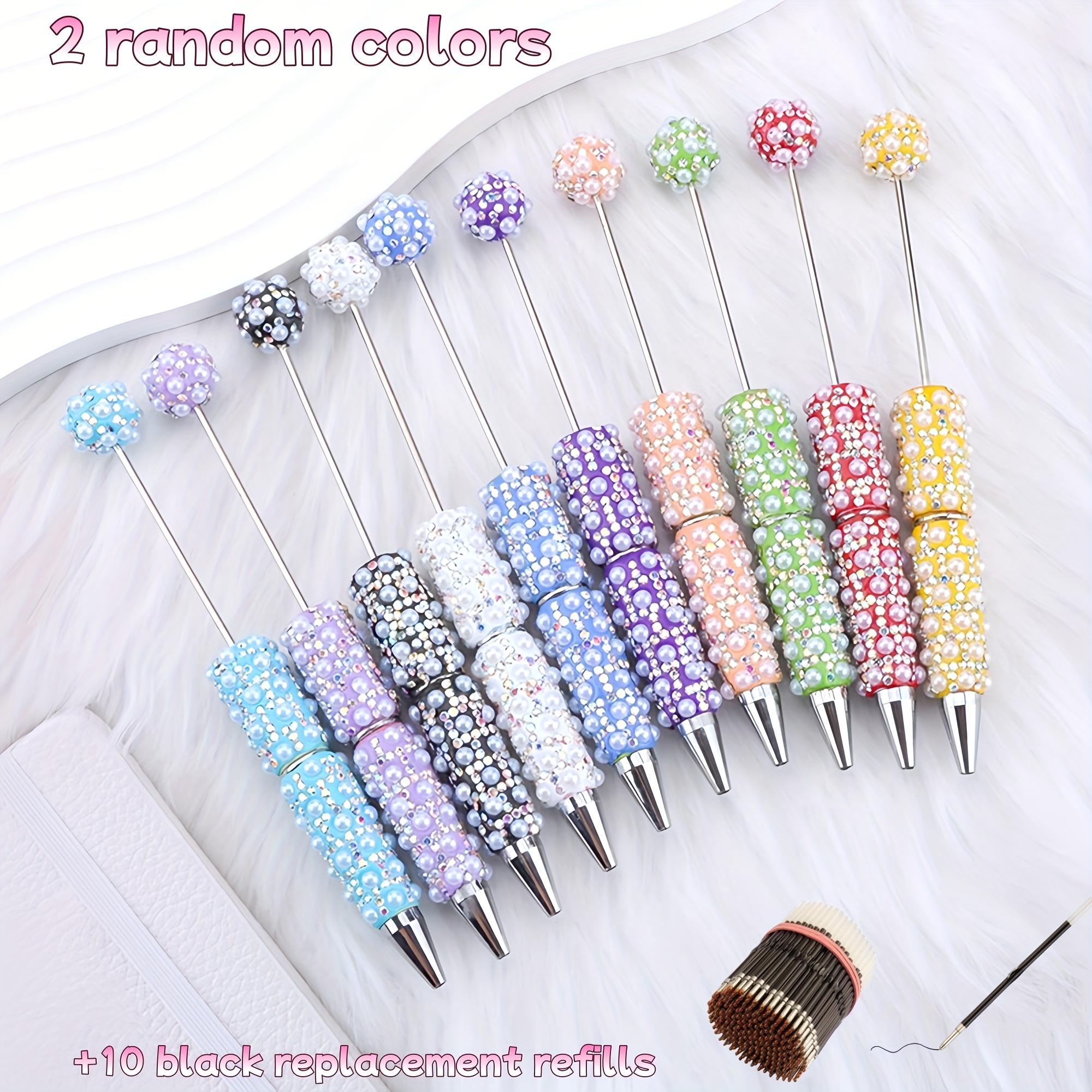 TEMU 12개 세트(2개 DIY 펜 + 10개 검정색 리필) 럭셔리 헤비 인더스트리 보석 인조 주얼리 만들기 키트 구슬 펜 볼펜 DIY 펜 액세서리 창의적인 문구류