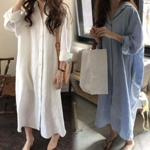 [셀럽하우스]캐주얼 JTPJ6974 롱셔츠원피스 간절기 단추 청남방 원피스