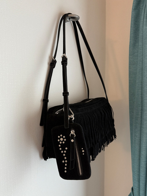 [파인드카푸어] 플라워 스터드 플랫 파우치 - 스웨이드 블랙
