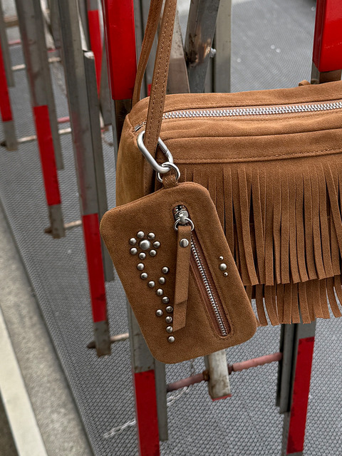 [파인드카푸어] 플라워 스터드 플랫 파우치 - 스웨이드 카멜