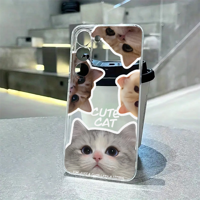 TEMU 귀여운 고양이, 하이엔드 패턴, 삼성 시리즈 A54/A53/A52(A52S 유니버설)/A34(5G)A32(5G)/A14(5G)/A13(5G)/A12/A04S/S10+/S21/S21U/S21+/S22/S22+/S22U/S23/S23+/S23U 및 S24 시리즈 A15/A35(5G)/A55(5G)에 적합한 낙하 방지 트렌디 남녀 투명 휴대폰 케이스