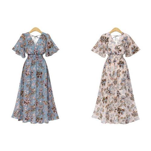 [셀럽하우스]시원한 ADPD4460 플라워 패턴 랩디자인 롱 원피스 파티룩 패션