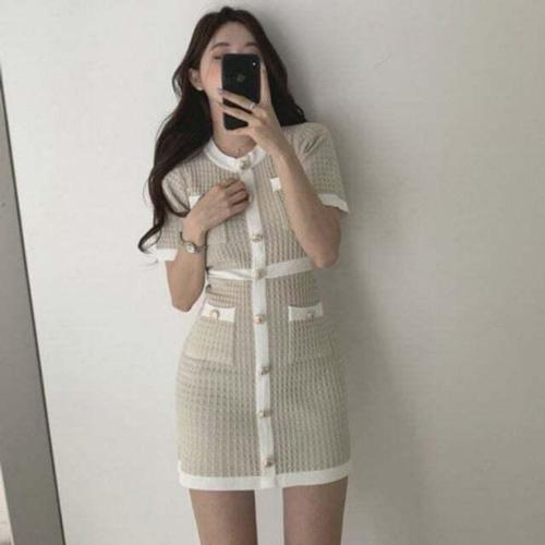 [셀럽하우스]원피스 NXOK3237 인기 슬림핏 여성 파티 감성 데이트룩 버튼 슬