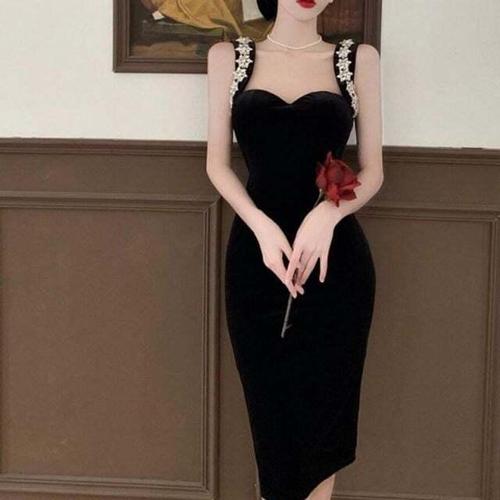 [셀럽하우스]벨벳 DXOD3811 롱원피스 파티룩 모임룩 슬림 민소매원피스 민소