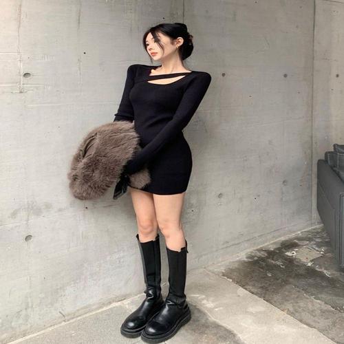 [셀럽하우스]니트 UOGL8616 슬림 클럽원피스 파티룩 긴팔원피스 모임룩 미니