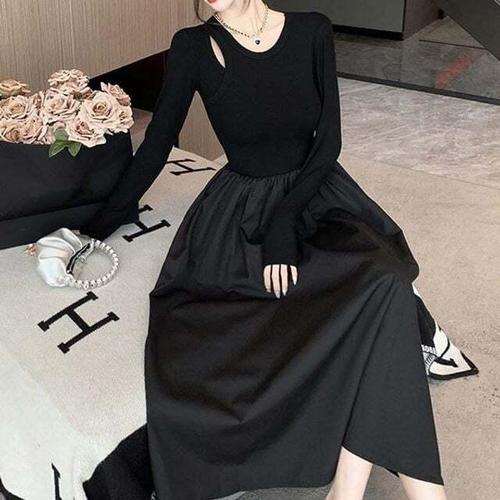 [셀럽하우스]여성 RUBQ2493 플레어 롱 원피스 파티룩 하객룩 결혼식 A라인
