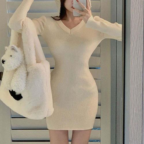 [셀럽하우스]브이넥 NRIP7406 슬림핏 원피스 붙는 원피스 연말 파티룩