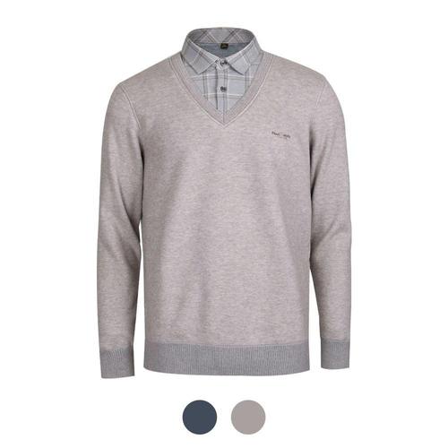 갤러리아_[파파브로] 남성 기모안감 셔츠 레이어드 브이넥 니트티셔츠 A