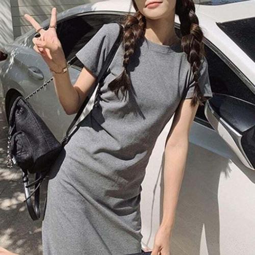 [셀럽하우스]무지 CQLG7577 데일리 추천 원피스 봄 여름 반팔 면 스커트 홈