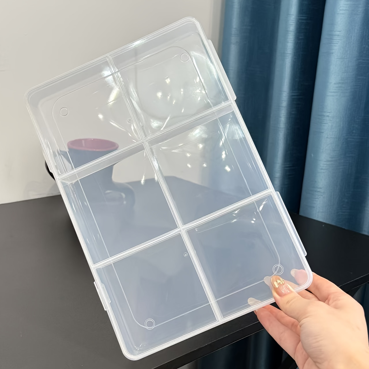 TEMU 대형 두꺼운 6구획 DIY 비즈 보관함 카드 슬롯 포함 - 공예, 주얼리 만들기 및 데스크탑 정리용 내구성 플라스틱 오거나이저, 다목적 크래프팅 문구 홀더, 비즈, 단추, 공예 재료, 비즈 보관 상자, 튼튼한 구조, 두꺼운 소재, DIY 애호가를 위한