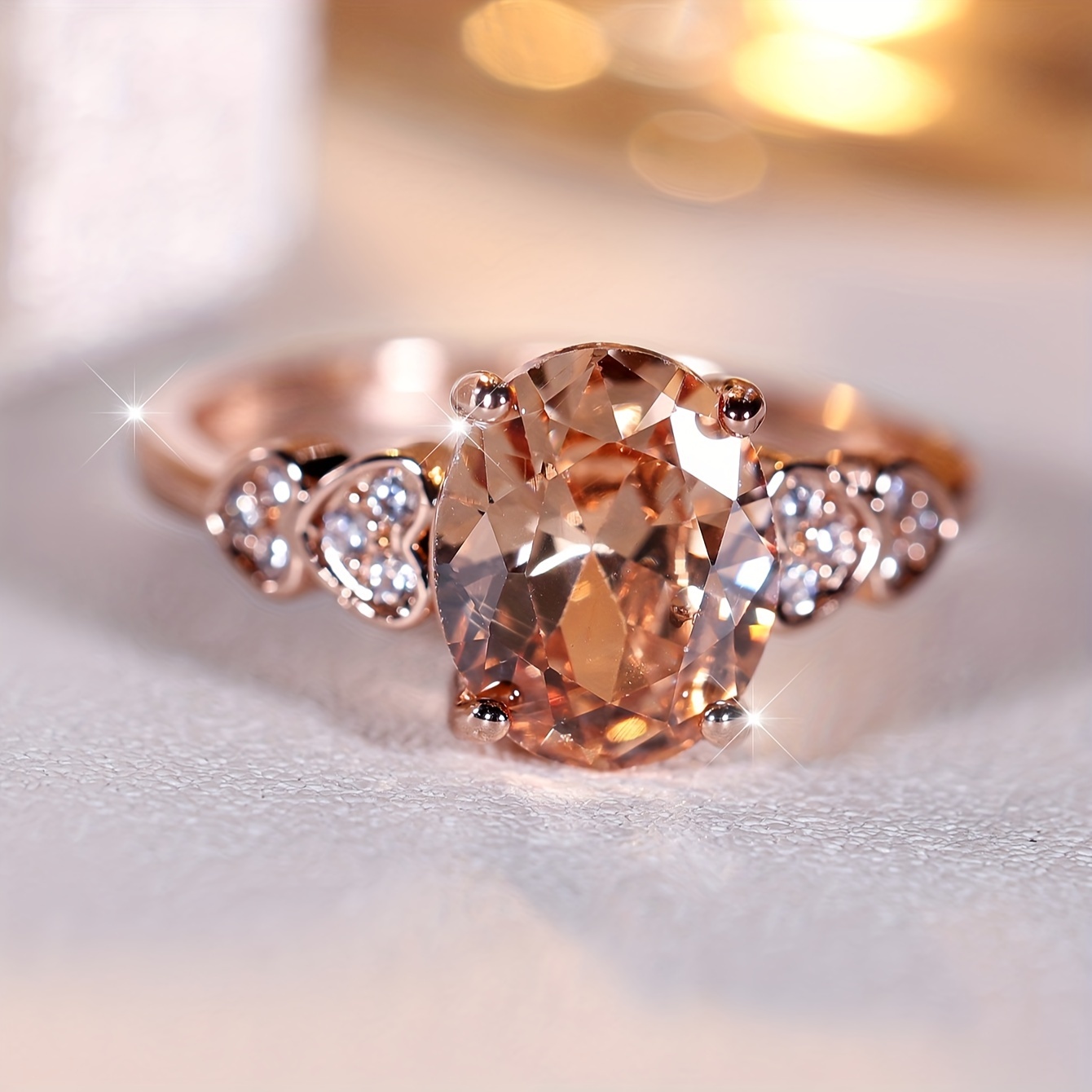 TEMU 고급스럽고 우아한 계란 모양의 샴페인 색상 반지, 흰색 인조 지르코니아 스톤 장식, 하트 모양의 약혼 반지 디자인