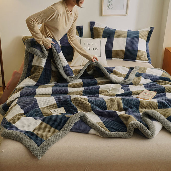 토마톰스 [토마]보송보송 체크 담요 더블/극세사 이불 블랭킷 패딩 밍크담요 러그 두꺼운 담요 캠핑(CN244)