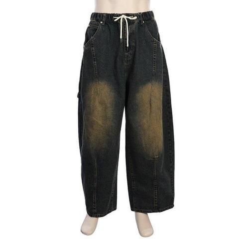 UPPERCUT 주니어 공용 데님 패치포켓 와이드팬츠 아동 청바지 밴딩청바지 워싱 데님팬츠