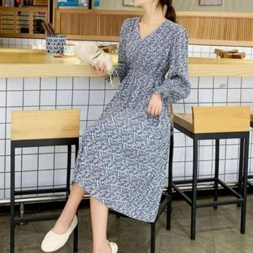 COSYEVNO 여성 봄가을 긴팔 플리츠 원피스 플라워 패턴 LFHmmlyq-10