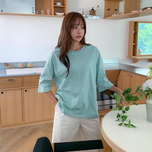 [옷자락]여성 유니크 백패티 루즈핏 코튼 7부 티셔츠