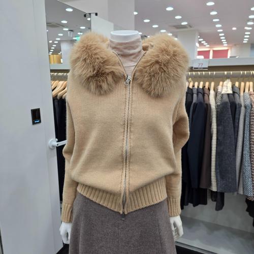 [포커스](팩토리스토어 강남점)인조 퍼 카라 니트 가디건_PBVFF5W1KC4681