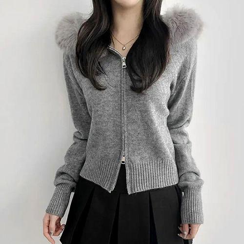 GGPX 퍼 후드 탈부착 집업 니트 가디건 (GPAKG027F)
