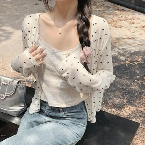 [라일리여성의류] Rly 가디건 퍼블릭 시스루 리본