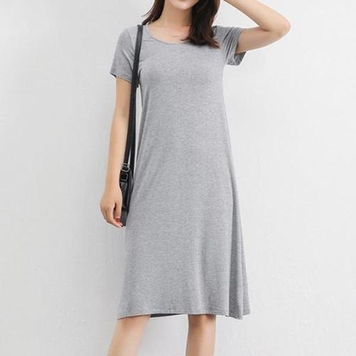 [엄지척]홈웨어 일상복 라운드 반팔 원피스 리스트 박스핏_19910059_667501