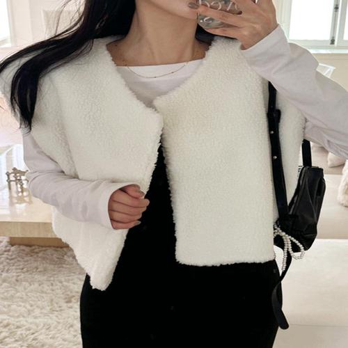 여성용 가을 겨울 데일리 베스트 숏 따뜻한 민소매 자켓 밍크라이크 조끼