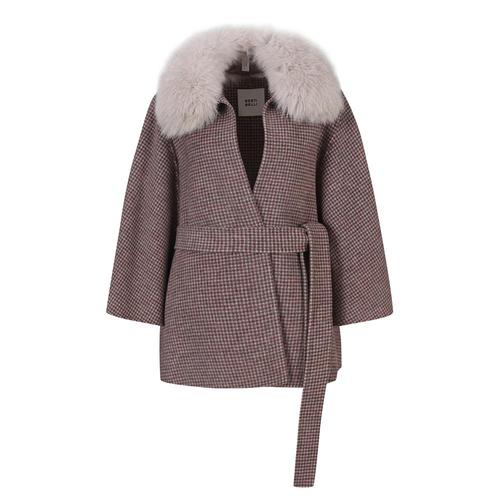 [베스띠벨리]울혼방 체크 폭스 퍼 케이프 코트 BJHRY2656 H