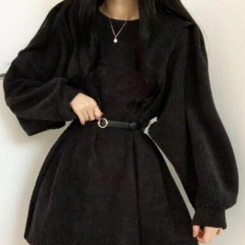코듀로이 원피스 겨울 골덴 퍼프소매 여성 롱 소매 WFLPUMQ