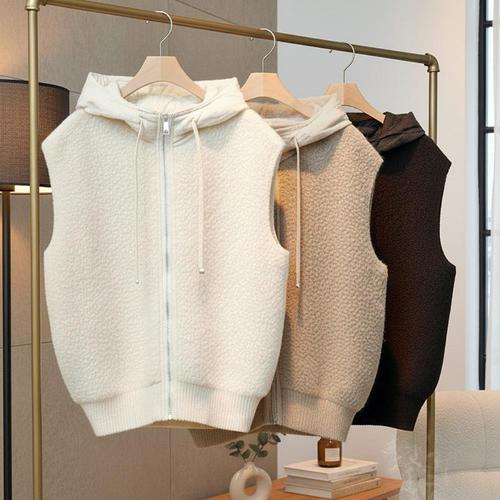 [옷자락]여성 캐주얼 뽀글이 퍼 스트링 후드 집업 베스트