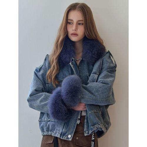 [마쟈]블루 폭스 퍼 루즈핏 데님 자켓