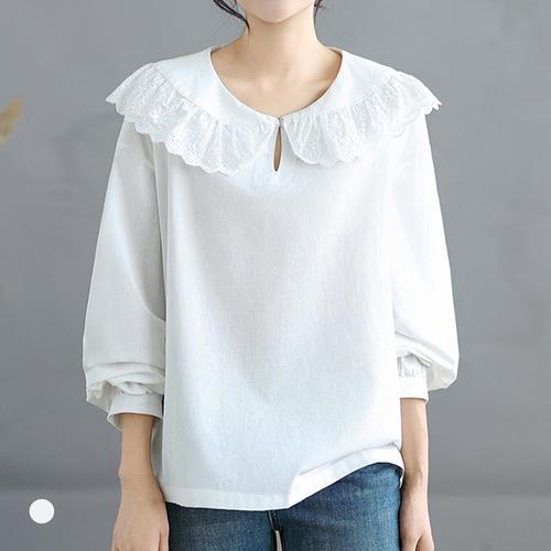 봉봉 데일리 셔츠 여름 바캉스 면100 펀칭 자수 남방 레이스 긴팔 카라넥 루즈핏
