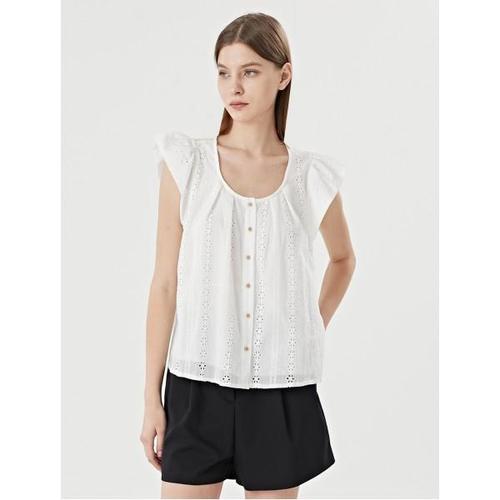 [보니스팍스]코튼 자수 펀칭 라운드넥 블라우스 (XP3BA033L0)