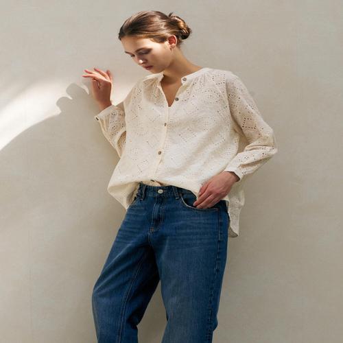 [에이치플러스몰]자수 펀칭 캐주얼 블라우스
