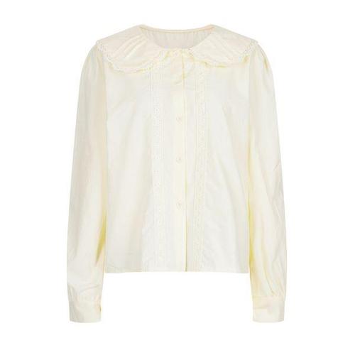 [샵앤]여성 피터팬 둥근 카라 펀칭 자수 긴팔 면 블라우스 SOM-WBL-20393-크림