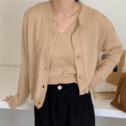 [드레스허그]로드 펀칭 나시앤 가디건 투피스 세트