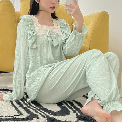 [옷자락] 여자 데일리 펀칭 프릴 라운드넥 투피스 홈웨어 잠옷