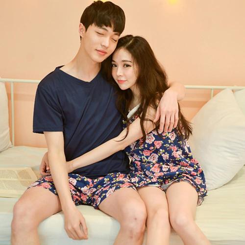 [옷자락] 여자 여름 시원한 라운드숄더 펀칭 투피스 잠옷 세트
