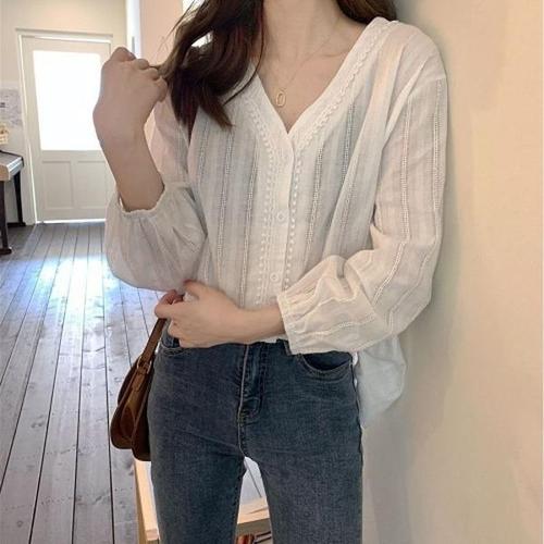 [엄지척]펀칭 레이스 블라우스 브이넥 봄 가을 데일리룩_19651219_667501