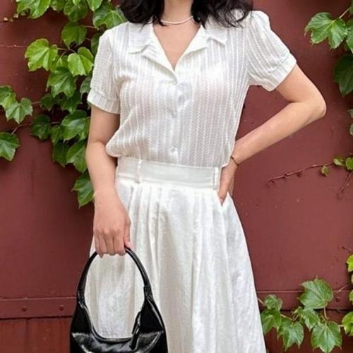 [엄지척]펀칭 자수 반팔 여름 블라우스 데이트룩 휴가룩_19660703_667501