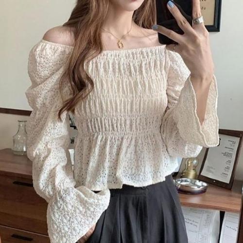 [엄지척]여성 셔링 소매 펀칭 레이스 얇은 블라우스 셔츠_19644544_667501
