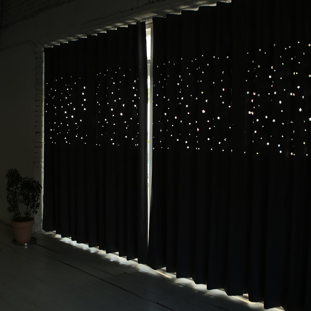 무타공 붙이는 펀칭암막커튼 별모양햇살 파티룸 창문 거실 벨크로커튼