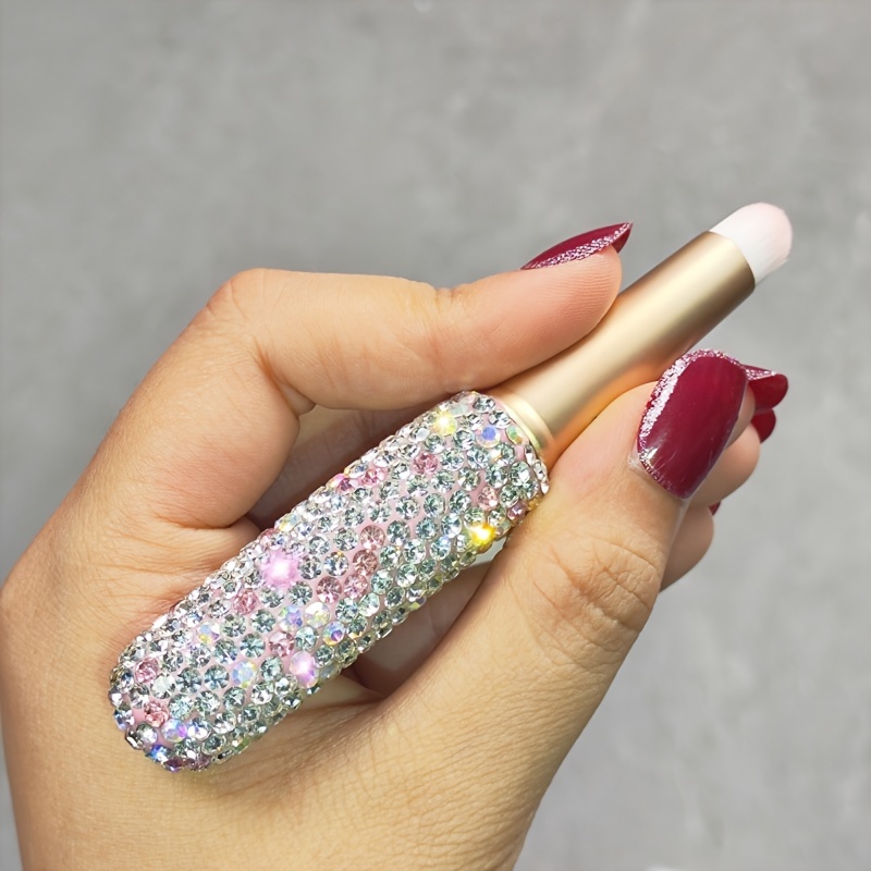 TEMU 라이트닝 라인스톤 장식 리프 브러쉬 - 다기능, 전원 필요 없음, 완벽한 립 컨실러 & 블렌딩을 위한 메탈 메이크업 어플리케이터, 반짝이는 디자인