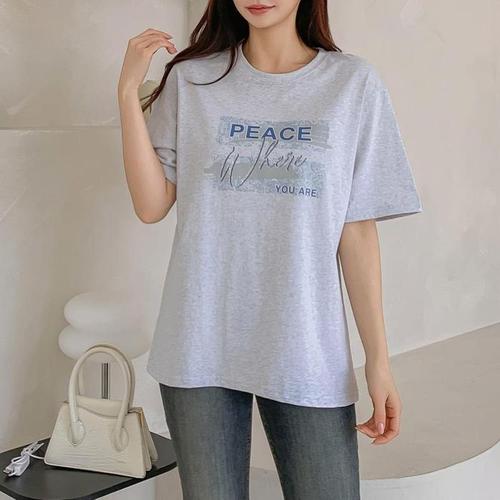 [옷자락]여자 글리터 레터링 페이즐리 실켓면 여름반팔 티셔츠