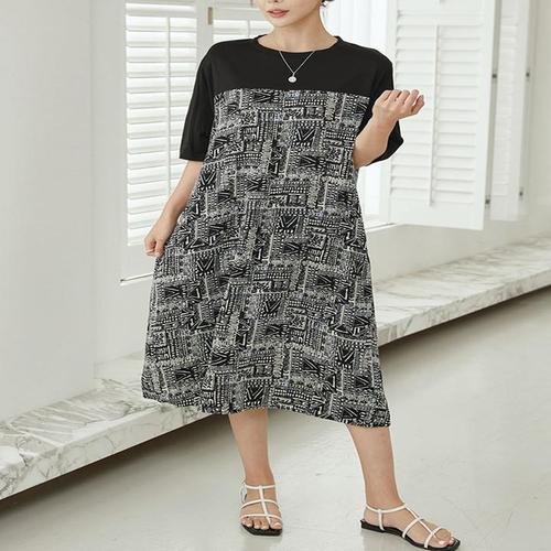 |KSO569F|여성 페이즐리 패턴 롱티셔츠 반팔 원피스 여행룩 박시핏