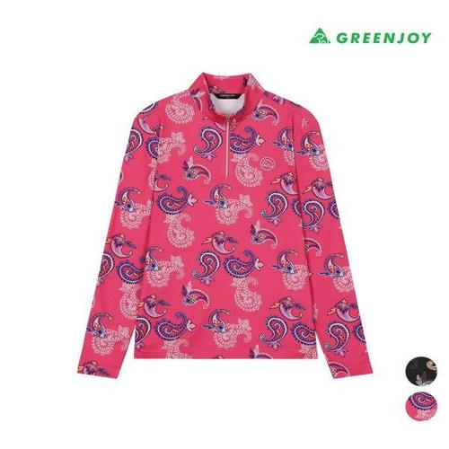 [그린조이]여성 페이즐리 프린트 하프집업 긴팔 티셔츠