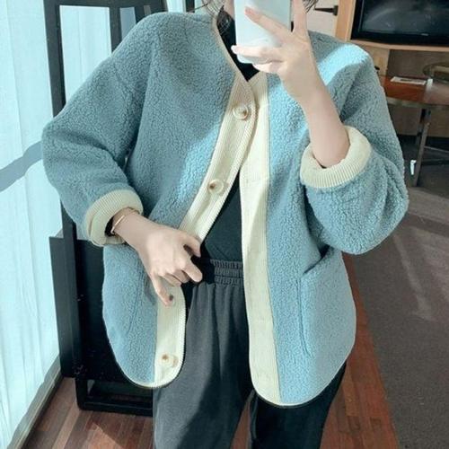 부클자켓 페이크퍼 배색뽀글이자켓 뽀글이자켓 노 WFLQVJ2