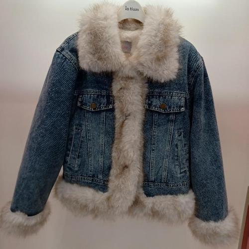 [라티움]Latium HC06 데님 크롭 안감 밍크 양모 페이크퍼 배색 카라 청쟈켓 T2654jk01 (45036261)