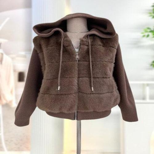 [스타일리쉬바이피클]하이브리드 페이크 퍼 니트 후드 집업 점퍼