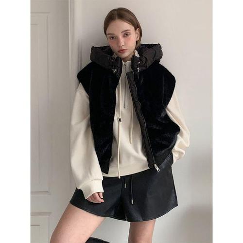 [옷자락]여자 페이크퍼 밍크베스트 연말룩 후드집업 보송 조끼