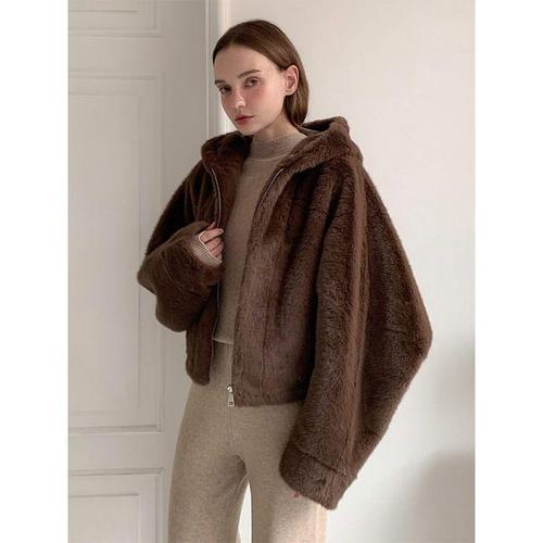 [다잇템]여자 반소매 FW 부드러운 페이크퍼 후드집업